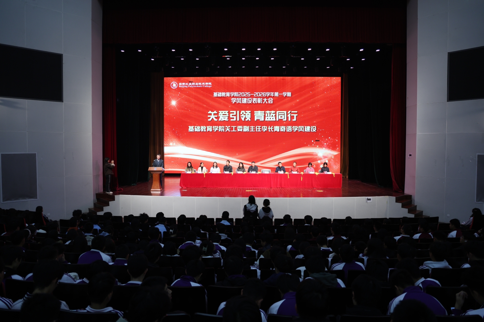 2025年11月5日,基础教育学院2025-2026学年学风建设表彰大会在礼堂隆重举行,学院关工委副主任李长青作为特邀嘉宾出席会议并发表讲话。他结合自身作为学校“青蓝工程”督导的工作经验,围绕学风建设的内涵、挑战与实践路径,为全院师生带来了一场思想深刻、内容务实的主题发言,现场掌声雷动,引发广泛共鸣。