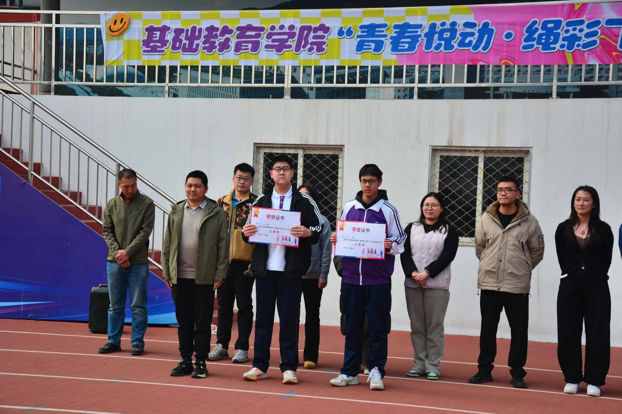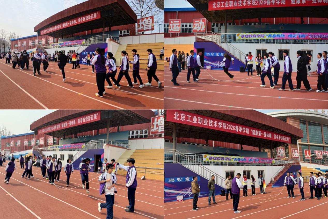 为将“健康第一”教育理念融入新学期,为全体学子注入奋进力量。2026年3月24日13:00,基础教育学院在体育场上举办“青春悦动·绳彩飞扬”跳长绳比赛。学院党总支副书记史伟、团总支书记赵宏维及全体辅导员莅临现场观赛,为参赛学子加油鼓劲。