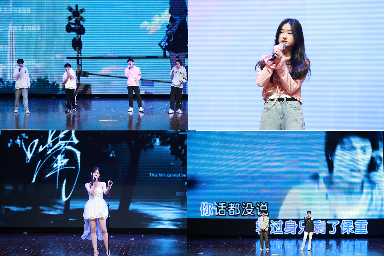 歌声里藏着青春与热爱,贯通2409班学生带来的合唱《我们的时光+彩虹下面》、汽车智能2571与工业互联网 2551班学生携手演绎的《PACKITUP》《都选C》,用集体力量唱响热血担当。