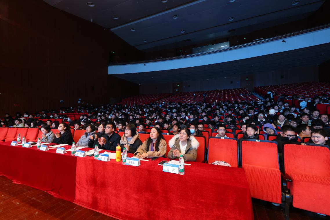 在点评环节,语文教研室主任张悦老师代表全体评委对每组选手进行了简要评述,并从“文本理解的深度、表达技术的精度、舞台展现的厚度”三个核心维度阐述了决赛的评分标准,强调最高级的表达,是将自己的人生阅历融入经典作品中并加以升华。