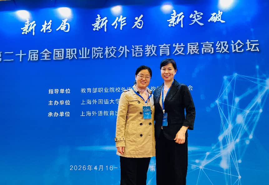 2026年4月16日至19日,第二十届全国职业院校外语教育发展高级论坛在湖南长沙举行。论坛以“新格局 新作为 新突破”为主题,围绕产教融合赋能、数智化教学转型、企业出海与文化传播等议题展开深入研讨。来自全国各地的400余位职业院校外语教学负责人和骨干教师参会。我院英语教研室支部书记杨洪玉、教师周咏梅加本次论坛。