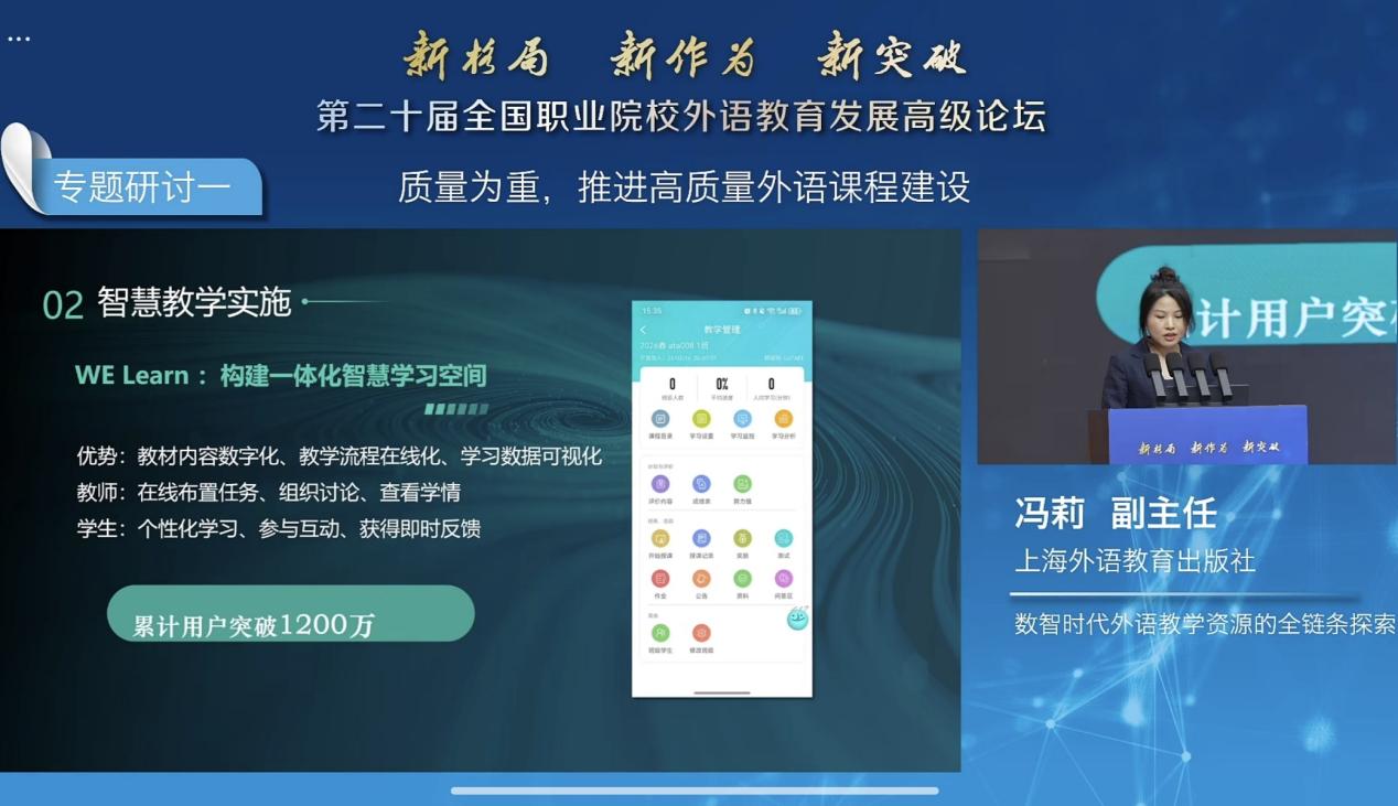 (上海外语教育出版社冯莉副主任的报告主题为“数智时代外语教学资源的全链条探索”)